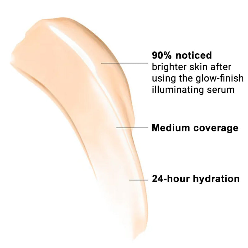 The beauty of our Foundation lies in both its formulation and finish. Our proprietary tri-effects technology combines skin-adaptive pigments with light-reflecting minerals suspended in a breathable base — delivering seamless, full-coverage results that still feel incredibly lightweight. Unlike traditional foundations, it perfects uneven skin tone and blurs imperfections without masking your skin’s natural texture. When applied as instructed on clean, moisturized skin, it creates a long-wear, sweat- and transfer-resistant finish that lasts all day.