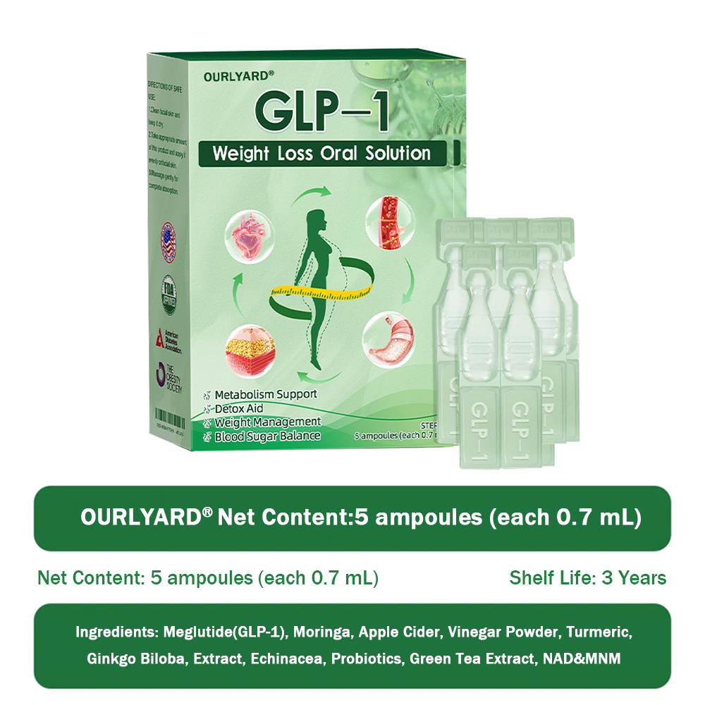 OurlyardŸ GLP-1 Six in One Health Solution Oral Liquid was developed by a team of over 30 experts in international endocrinology and diabetology after more than 3 years of research. It combines Tirzepatide with powerful herbal ingredients to boost metabolism, accelerate fat burning, and support digestive and lymphatic health. This oral solution has been approved by the U.S. Food and Drug Administration (FDA) for its safety and efficacy, offering a scientifically backed solution for weight loss and overall wellness.