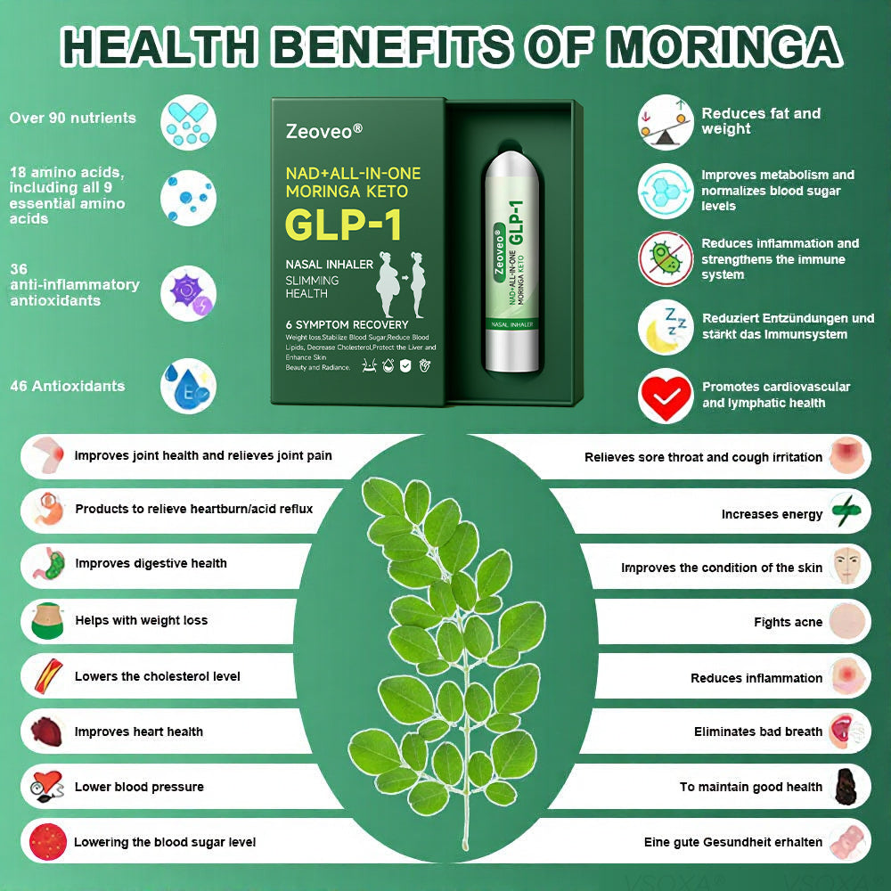 The ZVOEVOยฎ NAD+ ALL-IN-ONE MORINGA KETO GLP-1 Nasal Inhaler is formulated with powerful plant-based ingredients to support your health goals naturally and effectivelyโwithout harsh chemicals or unwanted side effects.